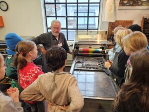 Am Freitag, den 6.2.2026 fuhren wir, die Klasse 4b, nach Barmbek. Im Museum der Arbeit wurden wir in 2 Gruppen eingeteilt. Ich war in der Buchdruckgruppe. Dort erzählte uns ein Mitarbeitet alles darüber. Ich war sehr erstaunt. Anschließend legten wir Buchstaben in eine Form.